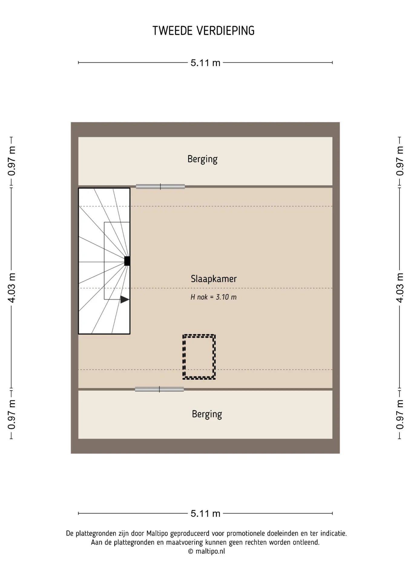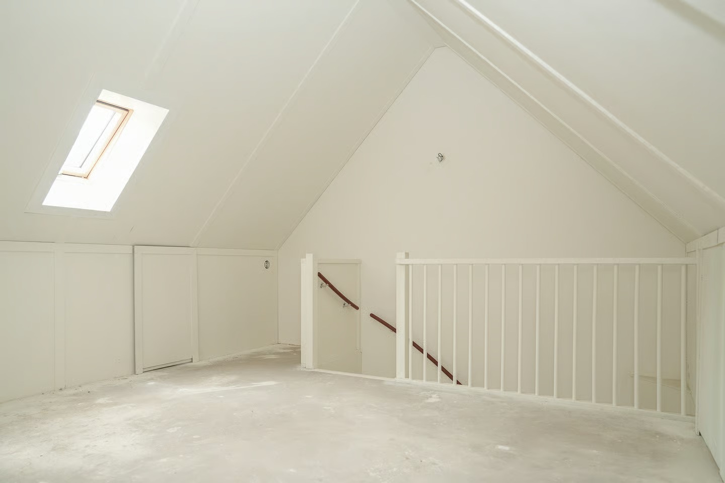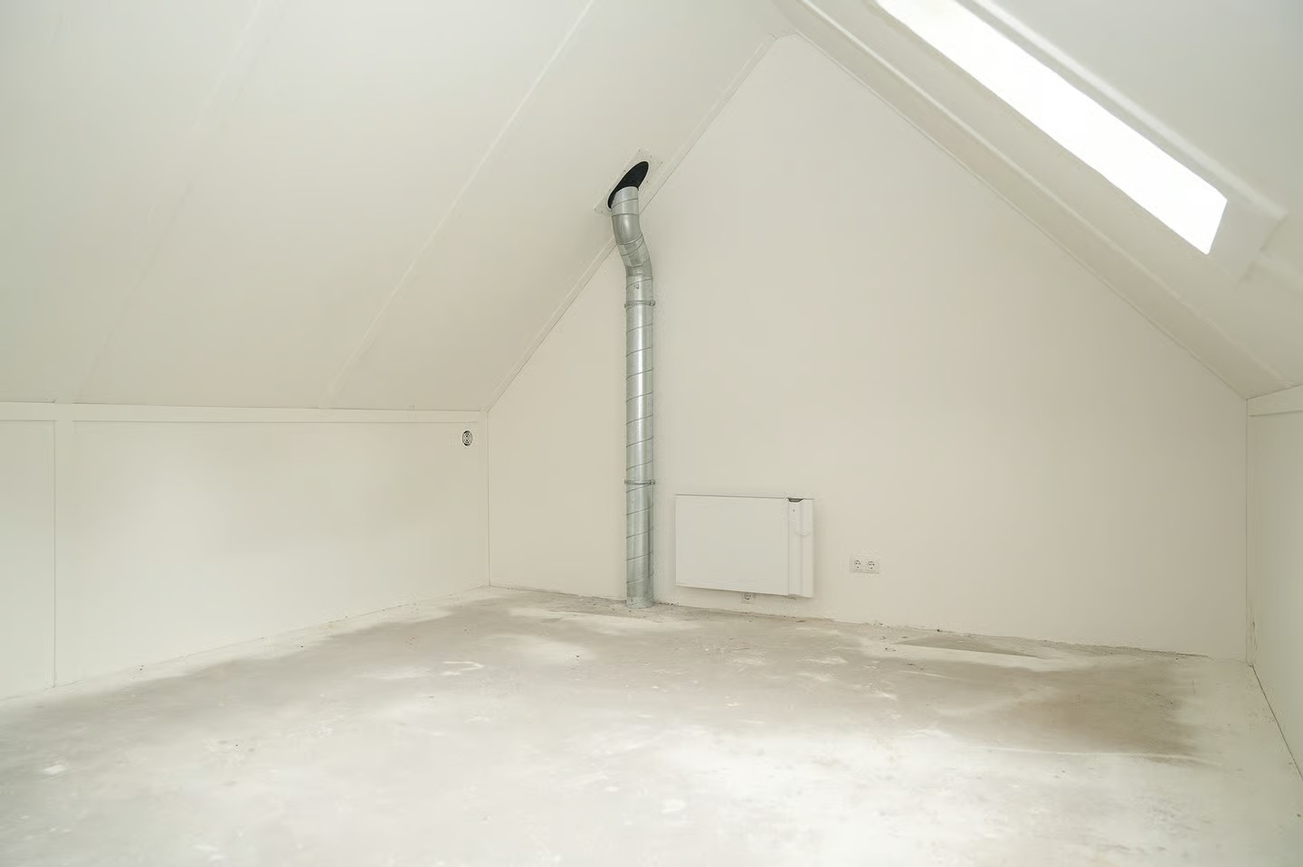 De tweede verdieping, de zolder, biedt ook nog ruimte voor een extra slaapkamer.