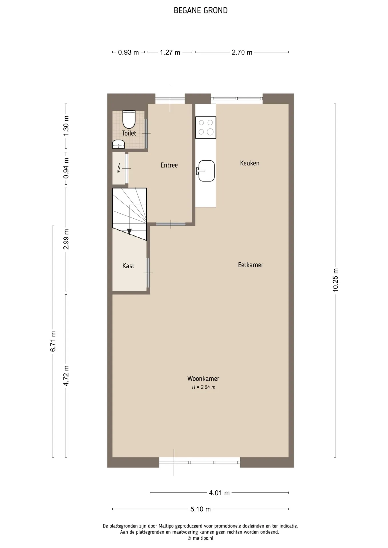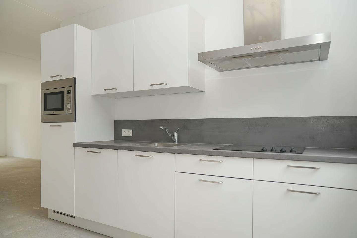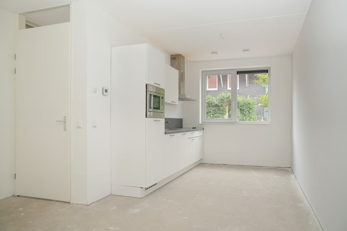 Deze woning is voorzien van een hal met toilet, ruime woonkamer met keuken en trappenkast op de begane grond. De keuken is voorzien van van een 4-pits kookplaat, afzuigkap, spoelbak met mengkraan, koelkast, combi-oven en een vaatwasser.
