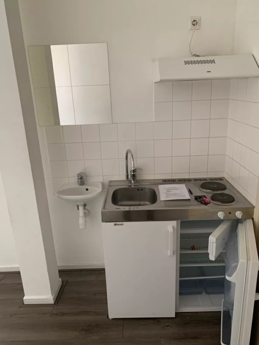 De kamer is voorzien van een eigen keuken met 2 pits elektrisch koken, een koelkast met vriesvak en afzuigkap. Daarnaast is er ook een eigen wastafel aanwezig. De toilet en douche is gedeeld met een gemiddelde van 4 anderen.