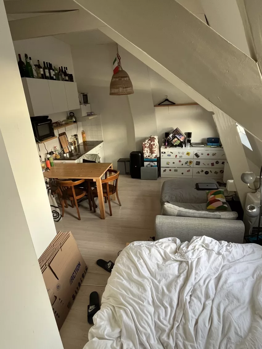De kamer is voorzien van een eigen keuken met 4 pits elektrisch koken, een koelkast met vriesvak en afzuigkap. De badkamer en toilet deel je met een gemiddelde van 4 andere huisgenoten.