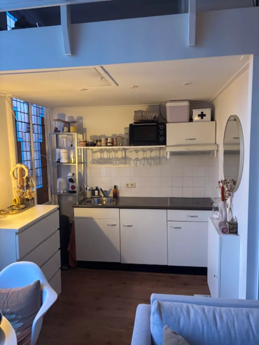 De studio is voorzien van een eigen keuken met 4 pits elektrisch koken, een koelkast met vriesvak en afzuigkap. De badkamer en toilet deel je met een gemiddelde van 4 andere huisgenoten.