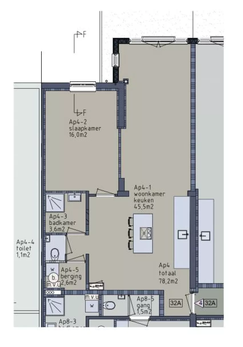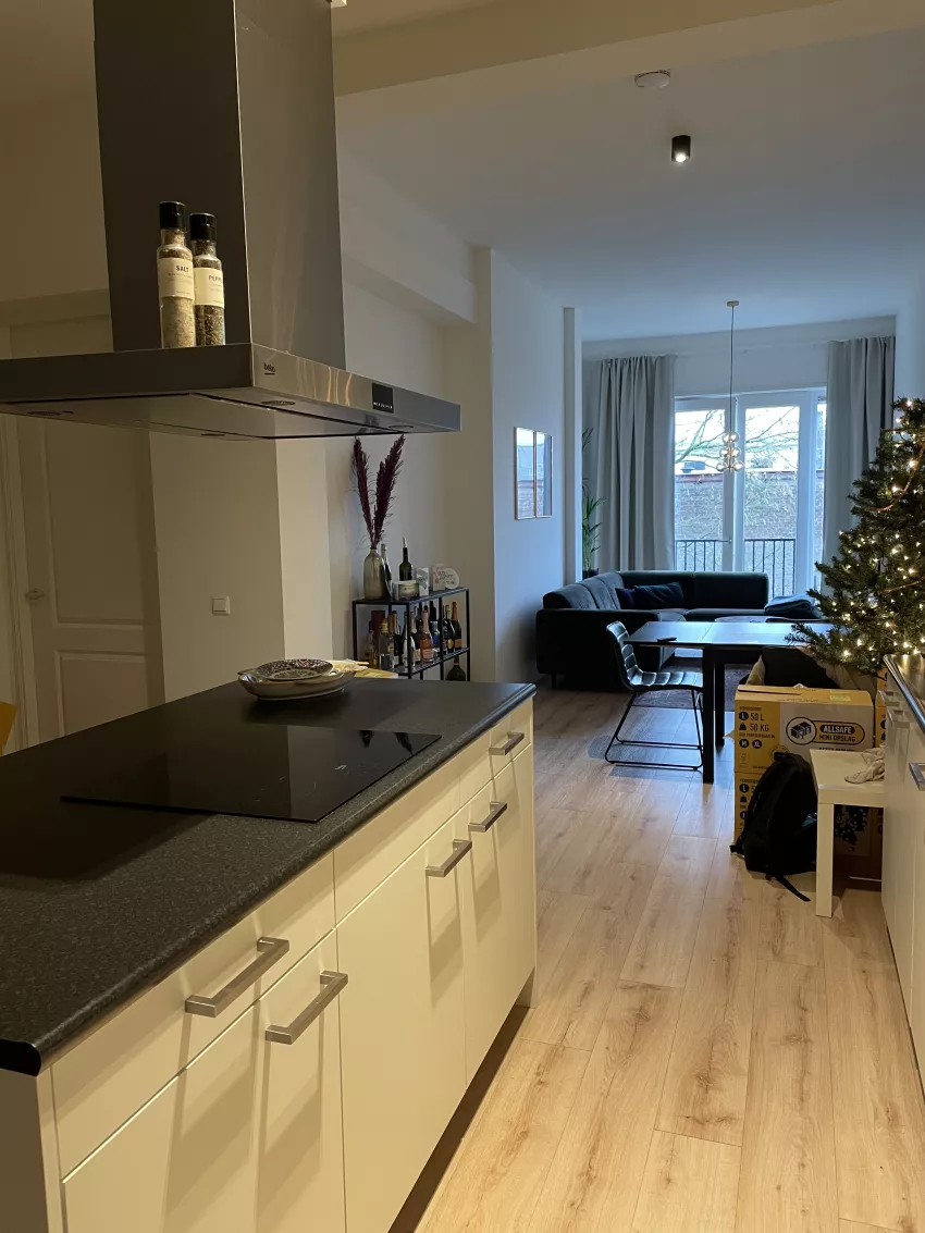 Het appartement is voorzien van een prachtig kookeiland met 4 pits elektrisch koken, een RVS afzuigkap, een vaatwasser en koelkast met vriesvak. De badkamer is voorzien van een douche, wastafel en een spiegel. De woning heeft ook een losse toilet. De woning heeft als laatste nog een aparte berging, waar ook de aansluiting voor de wasmachine te vinden is. Parkeerplaats recht voor de deur.