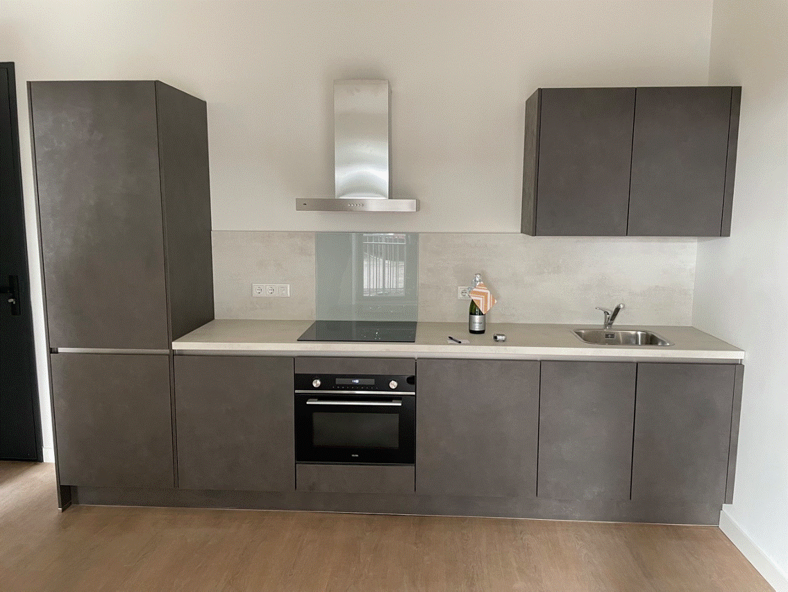 Het appartement (energielabel A++ met 3 zonnepanelen op de eigen elektrameter) is voorzien van een luxe keuken inclusief verlichting met een 4-pits inductie kookplaat, koelkast met vriesvak, vaatwasser en een combi-ovenmagnetron. De badkamer, inclusief verlichting, is voorzien van een douche, toilet, handdoekradiator, wastafelmeubel en een spiegel. In de badkamer is de aansluiting voor de wasmachine en eventueel droogtrommel te vinden. Het volledige appartement is daarnaast voorzien van een pvc-vloer en volledig afgewerkte muren. Een privé parkeerplaats rondom het pand en privé berging in de kelder is inbegrepen.