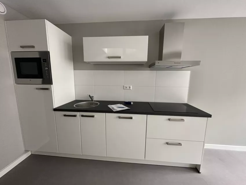 De woning is voorzien van een keuken met een 4 pits elektrisch koken, een koelkast met vriesvak, een combi-ovenmagnetron en een vaatwasser. De badkamer is voorzien van een douche, toilet, handdoekradiator, wastafelmeubel en een spiegel.