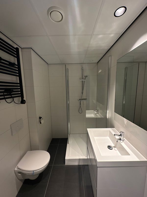 Het appartement bevindt zich op de eerste etage en is voorzien van een keuken met een 4 pits elektrisch koken, een koelkast, een vriezer, een combi-ovenmagnetron en een vaatwasser. De badkamer is voorzien van een douche, toilet, handdoekradiator, wastafelmeubel en een spiegel. Op de badkamer is ook de aansluiting voor de wasmachine te vinden. Het volledige appartement is daarnaast voorzien van een pvc-vloer en design rolgordijnen. Inclusief privéparkeerplaats rondom het gebouw en een eigen berging in de kelder.