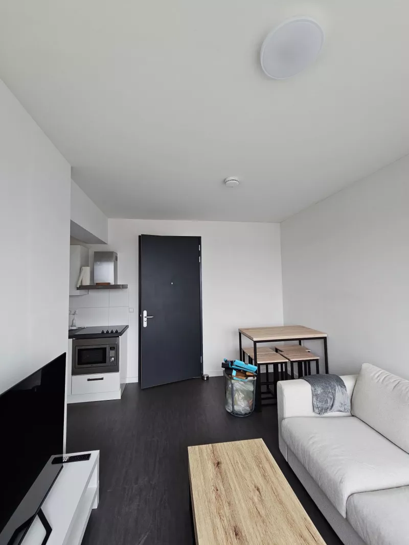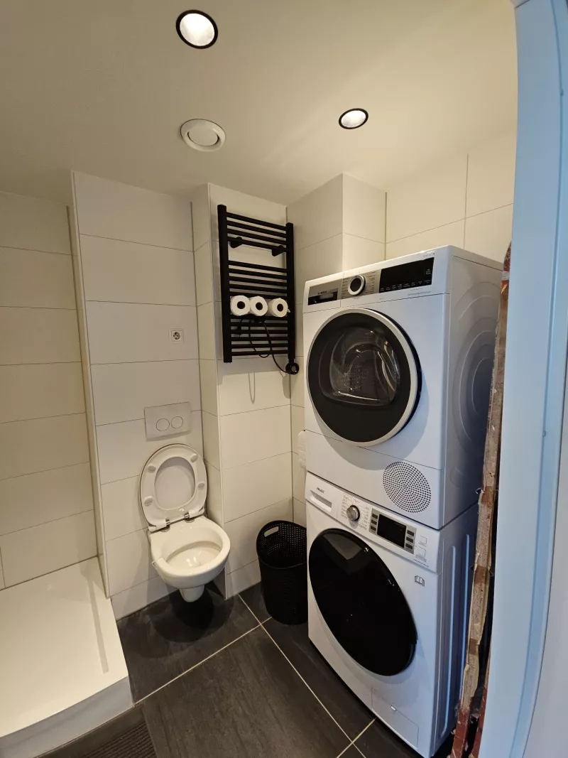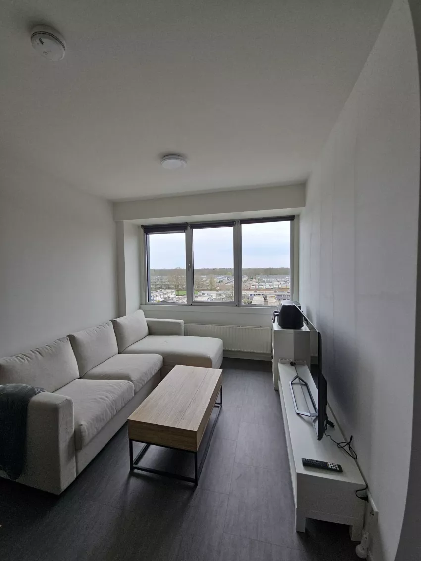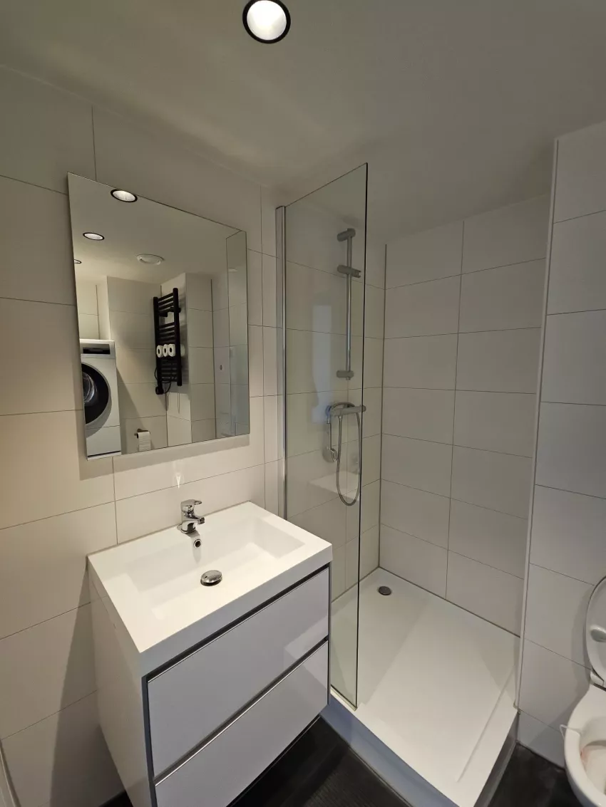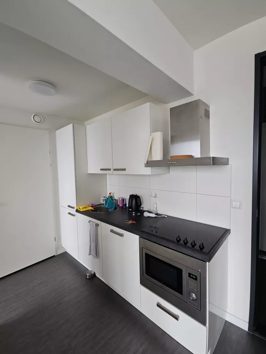 De studio is gelegen op de 6e etage en is voorzien van een keuken met een 4 pits elektrisch koken, een koelkast, een vriezer, een combi-ovenmagnetron en een vaatwasser. De badkamer is voorzien van een douche, toilet, handdoekradiator, wastafelmeubel en een spiegel. Op de badkamer is ook de aansluiting voor de wasmachine te vinden. De volledige studio is daarnaast voorzien van een pvc-vloer en design rolgordijnen. Inclusief een privé parkeerplaats rondom het pand en een privé berging in de kelder.