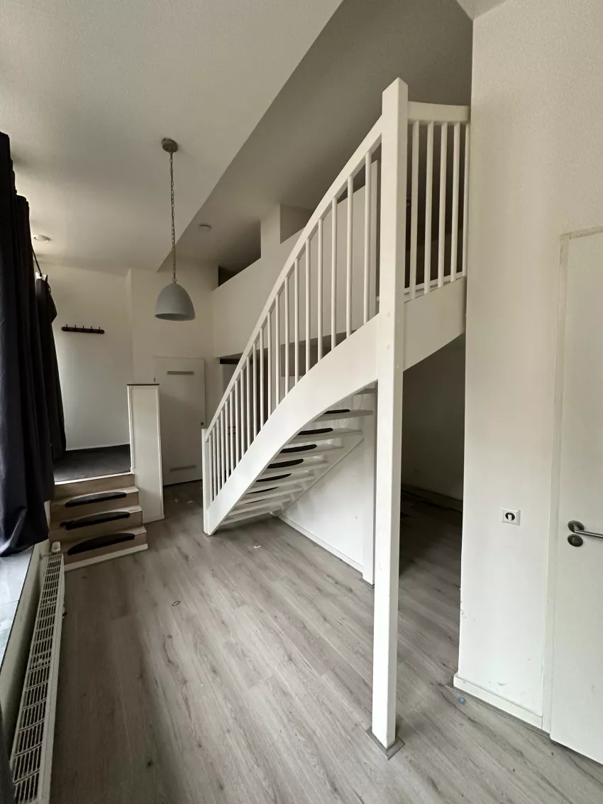 Dit is een zelfstandig appartement van ca. 46m2 (bovenverdieping niet meegerekend) voor €896,24 huur en €95,00 servicekosten (totaal dus €991,24 per maand).